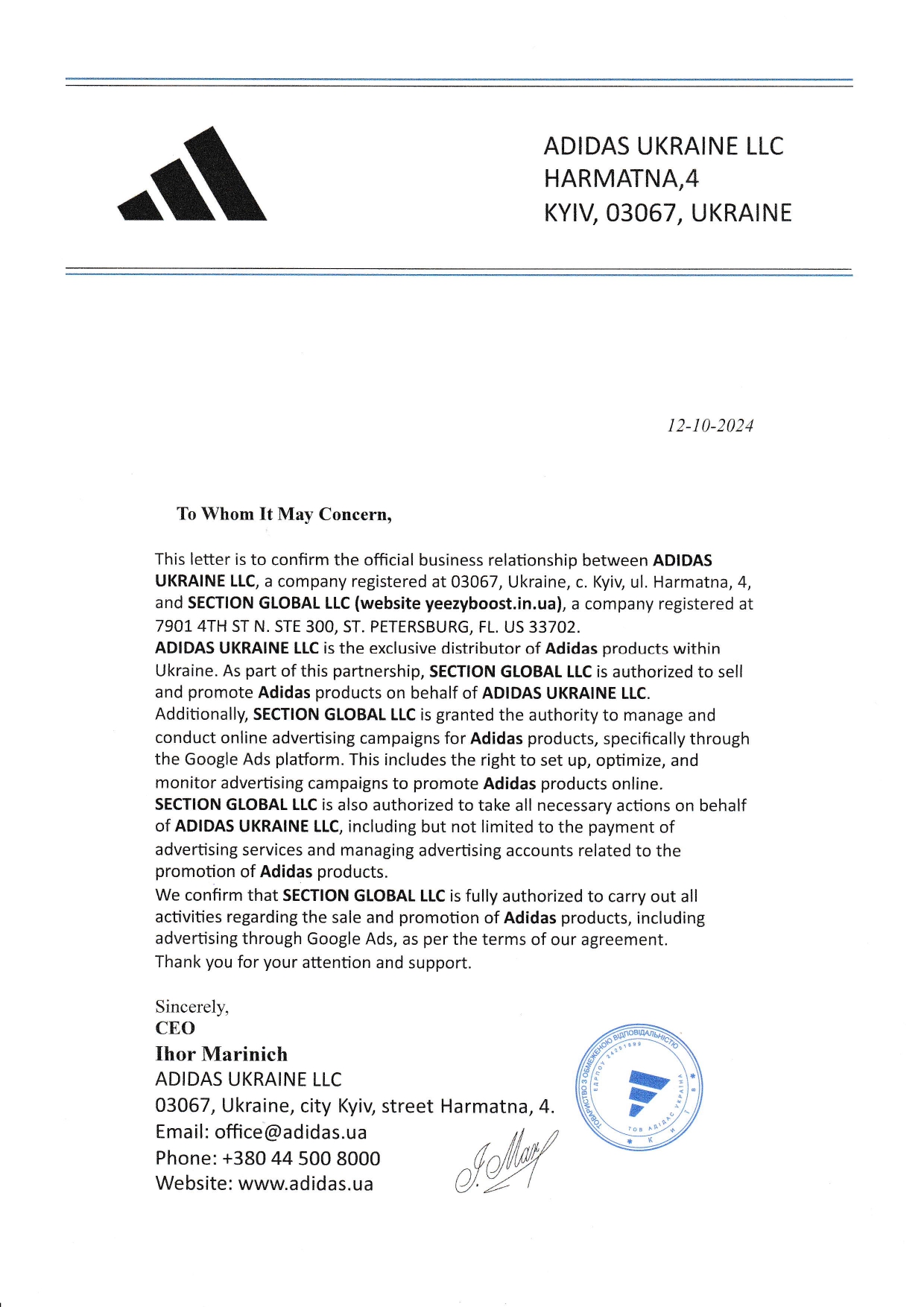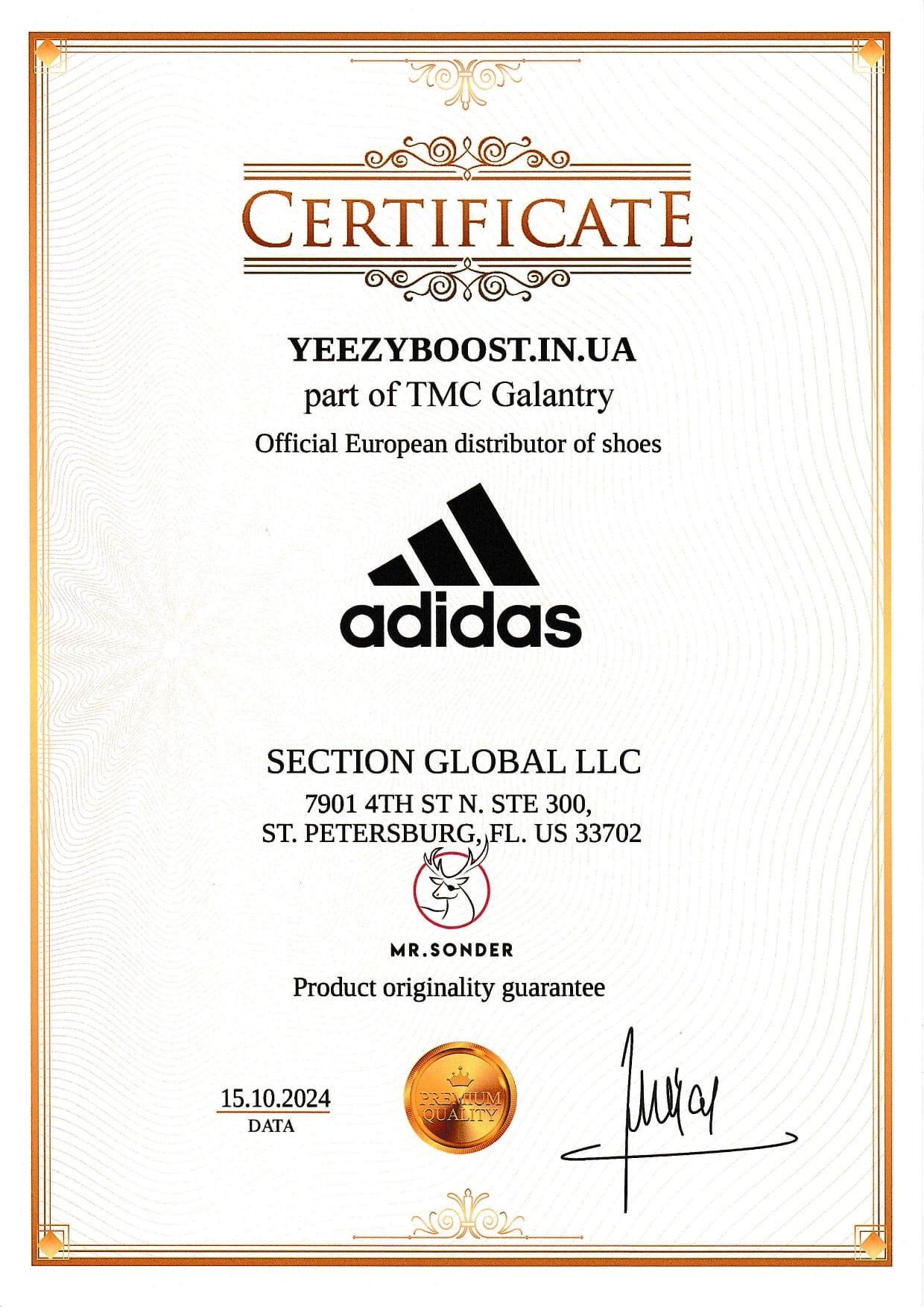 Yeezyboost.in.ua спеціалізується на продажу оригінальних кросівок Yeezy. Нижче розміщені офіційні документи, які підтверджують автентичність та оригінальність усіх товарів.